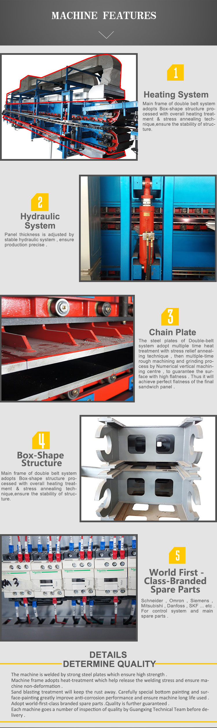 Spesiale dubbelbandvervoerbandontwerp verseker plat oppervlak, egalige dikte en anti-vervorming van die toebroodjiepaneel.